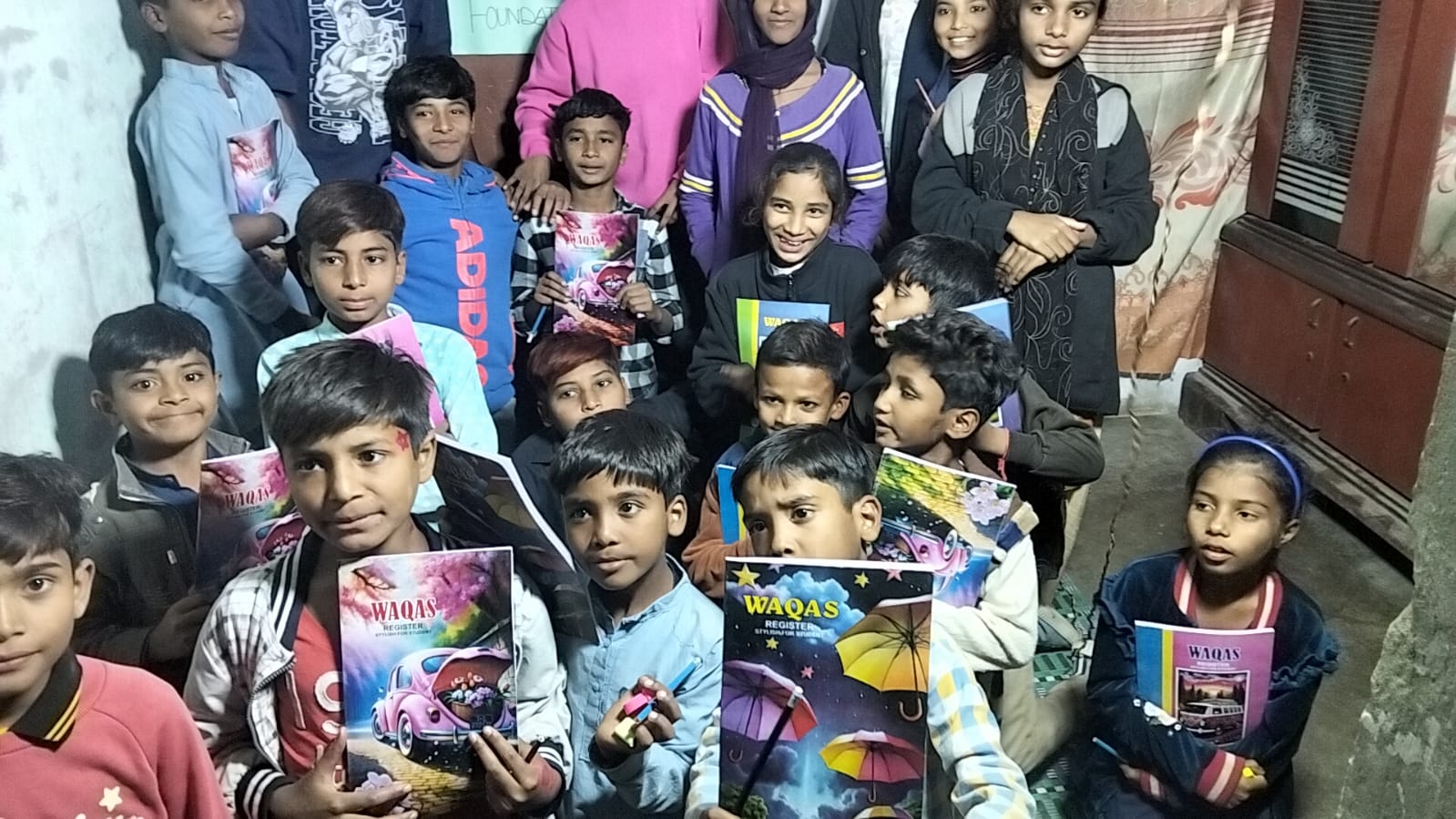 Exciting new initiative through our partner AMDG! The AMDG English academy is proof that a little can go a very long way! Foundation member, Roshani (pictured) sent us these pictures of her brother Zeeshan and enthusiastic students from the launch of the academy celebrated with a party and gifts! The academy functions to improve literacy